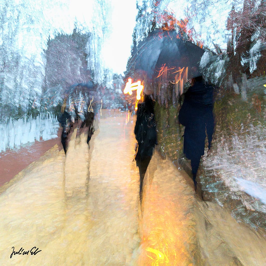 Art works in the experimental photography series “4 Seconds” are based on single photograph, exposed for 4 seconds. Static elements are combined with movements of people, creating trails of shapes, colors and textures. One moment they are there, in the next they are gone, to be replaced by someone or something else; creating meanings, stories and realities in a dimension that is otherwise invisible to the human eye.